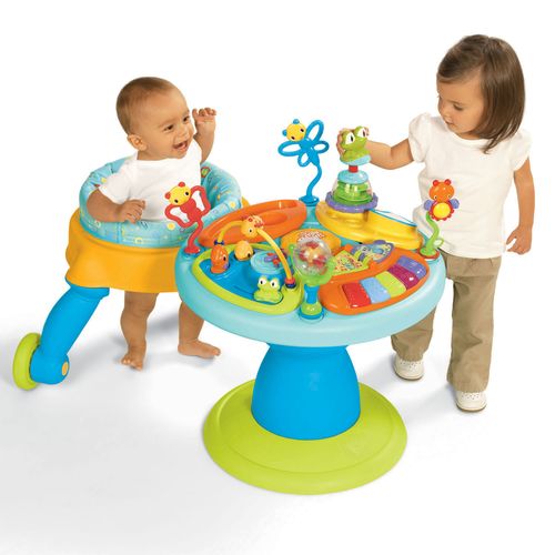 ПРЕКРАСНЫЙ вклад в развитие малыша – это игровой развивающий центр «Чудесный сад 360». Модель прекрасно подойдет для детей возрастом от 5 месяцев. Уникальное сиденье, вращающееся под углом 360 градусов, позволит ребенку гулять вокруг столика для игры. Данное сиденье очень легко убирается, благодаря чему появляется возможность использовать только игровой столик. В развивающем центре имеется специальный сектор пианино, который имеет возможность работы в нескольких режимах: различные звуки, мелодии и пианино. Отдельный сектор позволит играть с бусинками и дугой, пауком, выпрыгивающими фигурам, а также со скользящей лягушкой. К тому же, развивающий центр имеет целый ряд других игрушек: погремушка с пчелкой на стебле, трещотка в виде лягушонка, сектор с зеркальцем и др. Эти игрушки станут лучшими друзьями малыша. Стебли с бабочкой и стрекозой позволят малышу кусать их во время того, как у него начнут резаться зубки. Панель, на которой располагаются игрушки, очень легко моется, благодаря особому покрытию.