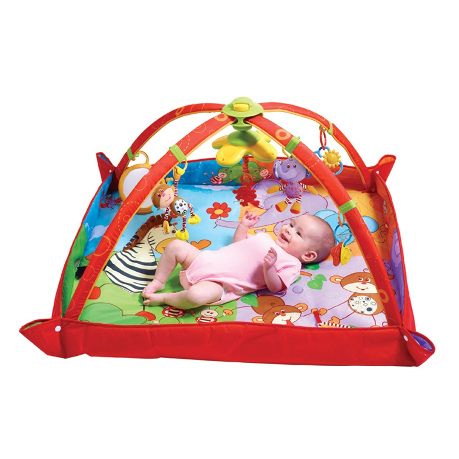 Большая игровая поверхность оснащена звуковыми и световыми эффектами. Различные погремушки, прорезыватели, а также вибрирующие и шуршащие элементы привлекут внимание малыша, и он с удовольствием будет открывать для себя новые возможности игры.